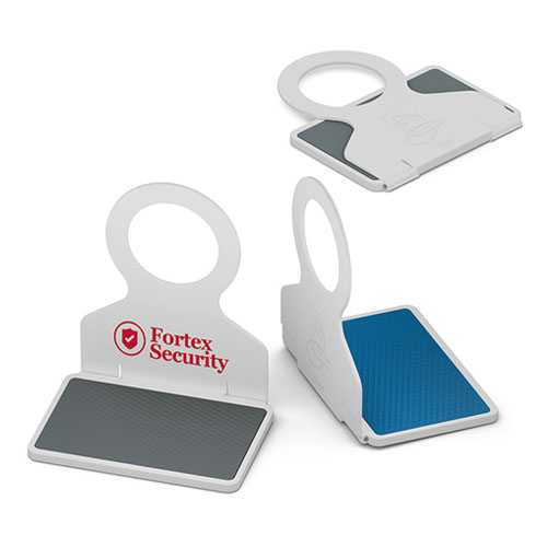 Тази поставка е с гумирано покритие, което държи стабилно всеки поставен върху нея телефон. Предвиденото рекламно поле е достатъчно, за да бъде брандирано вашето лого или слоган.