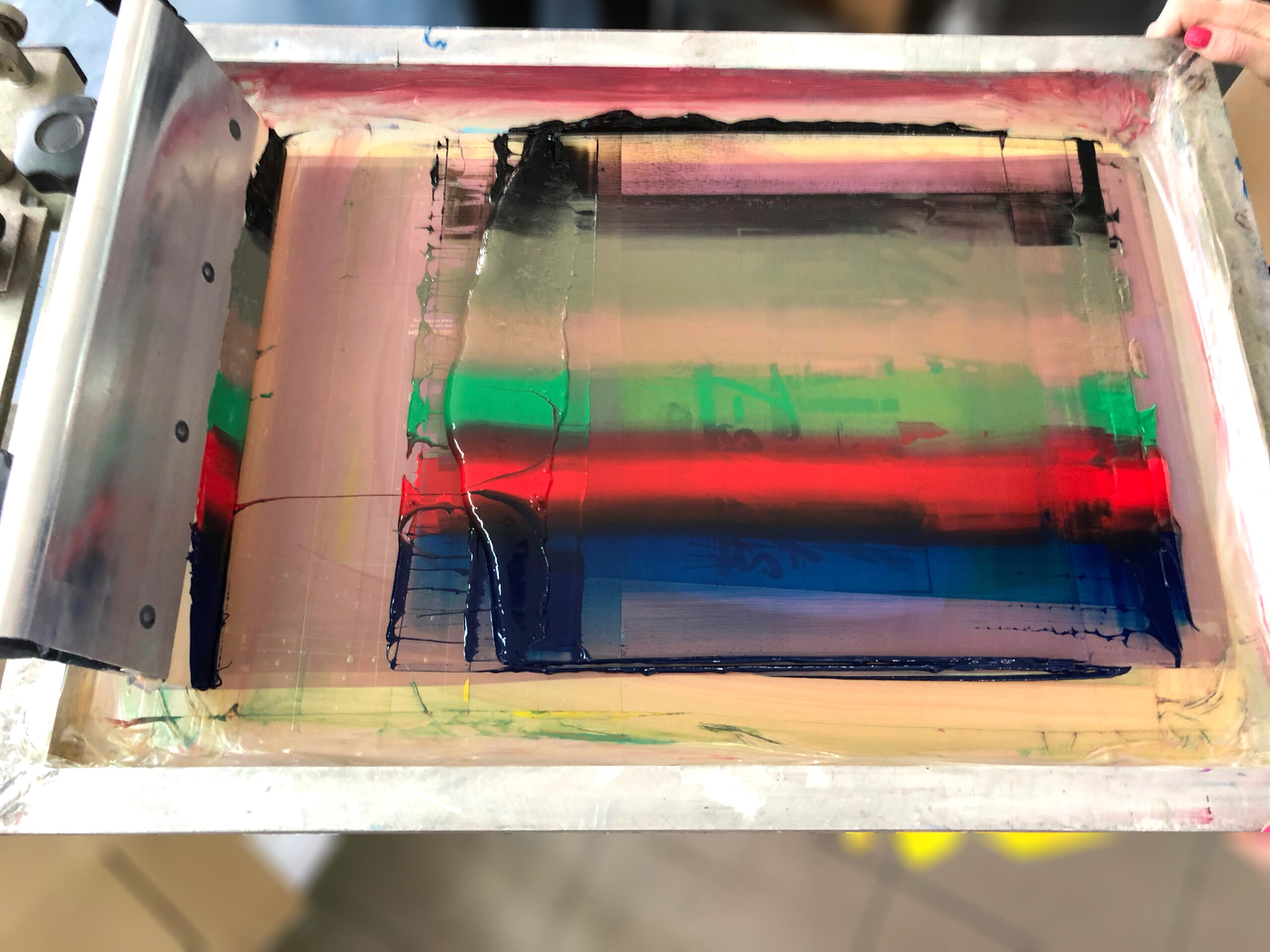 Multicolor подхода се различава с това, че вместо по 1 цвят на всяко сито се поставят 3,4 или повече различни мастила.